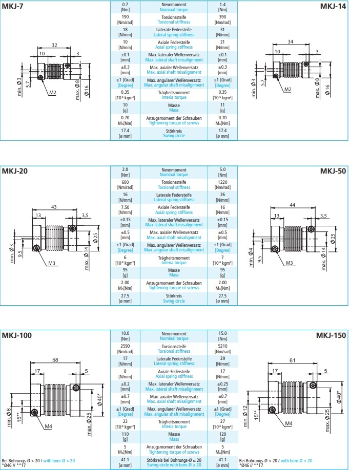 Die MKJ Kupplungen sind die ideale Lösung für eine exakte und winkeltreue Verbindung von zwei Wellen. Die tausendfach bewährte MJK Baureihe ist absolut zuverlässig. Innerhalb festgelegter Grenzen können Axial-, Lateral- und Winkelversatz zwischen zwei Wellenenden ausgeglichen werden.