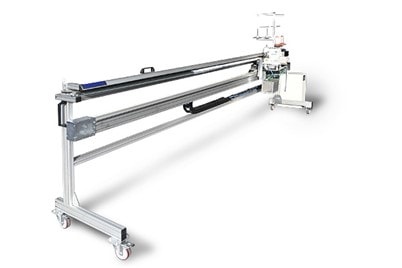 Double thread total flat overlook stitching machine mounted on a rail with automatic movement, allows to join fabrics with a perfect alignment of the edges and parallelism of the two edges of fabrics, improving the tension control (Available also single thread or chain point)