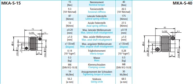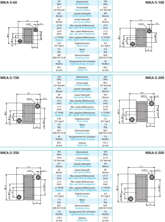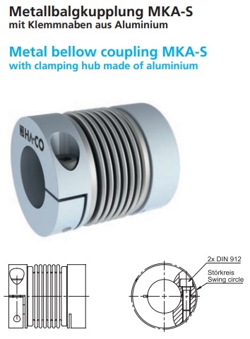 MKA-S is de gewichtsgeoptimaliseerde metalen balgkoppeling met aluminium klemnaven met een asdiameter tot 75 mm